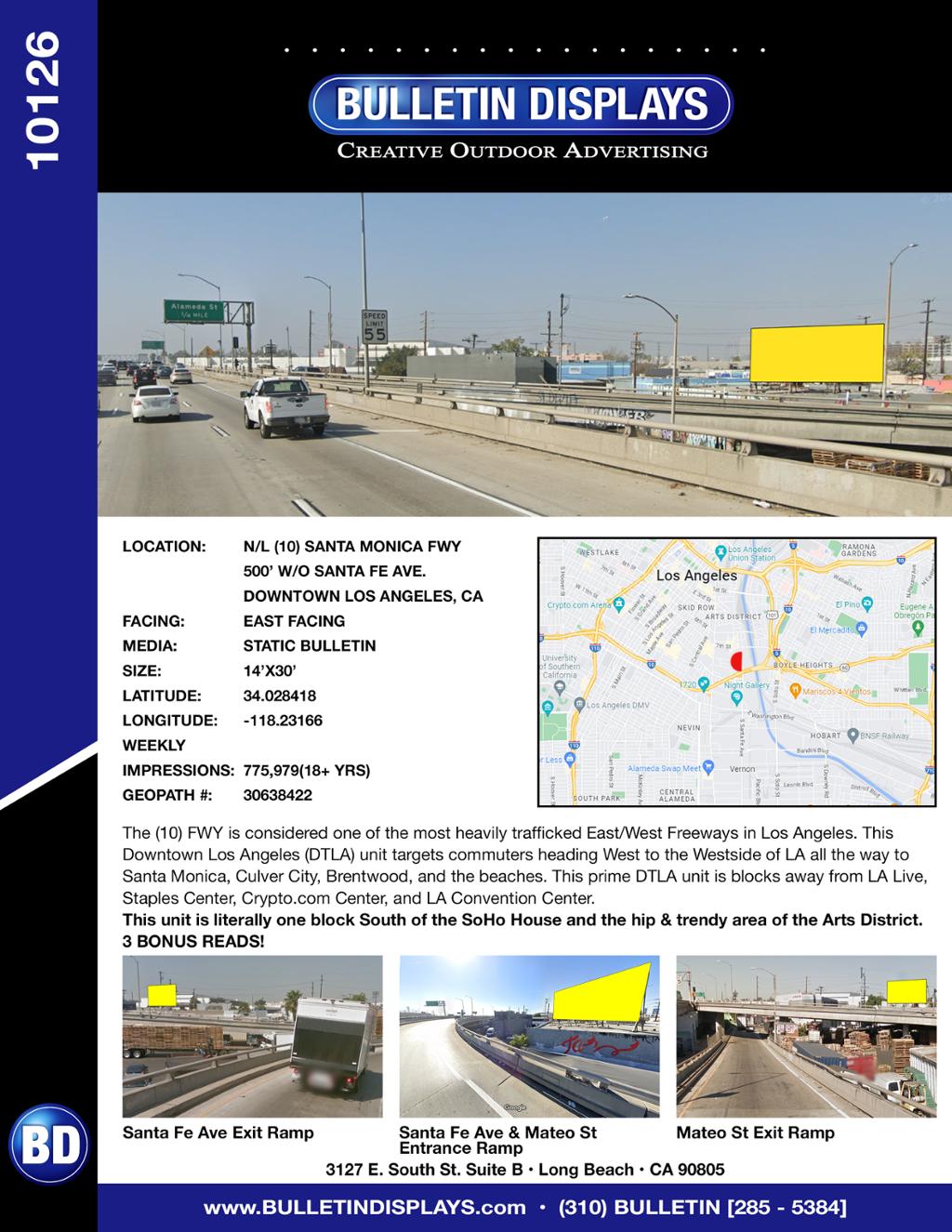 Location: #10126 San Bernardino (10) Freeway N/L 500' W/O Santa Fe Ave., Downtown Los Angeles (DTLA)